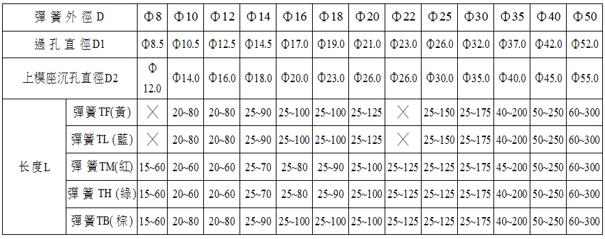 彈簧(顏色):D*L(D-彈簧外徑L-自由長度)
