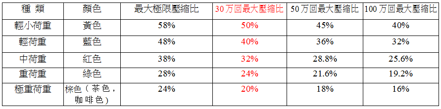 7.通常使用的最大壓縮比是彈簧使用30萬次的最大壓縮比.