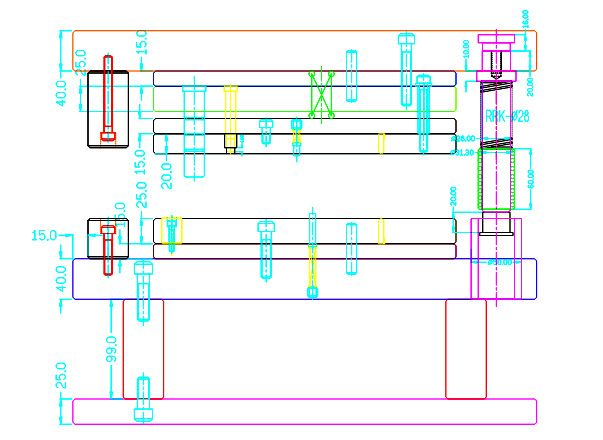 3.成形模采用氣墊結(jié)構(gòu)時(shí),下打板排配2~6個(gè)彈簧.下模座上不沉孔,彈簧選用黃色或藍(lán)色即可.