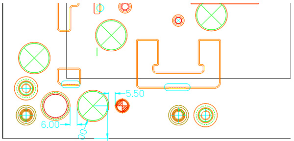 1.彈簧過孔中心到模板邊緣距離大於外徑D,與其他孔距離保持實(shí)體壁厚大於5MM,空間不足時(shí)最少留2MM.